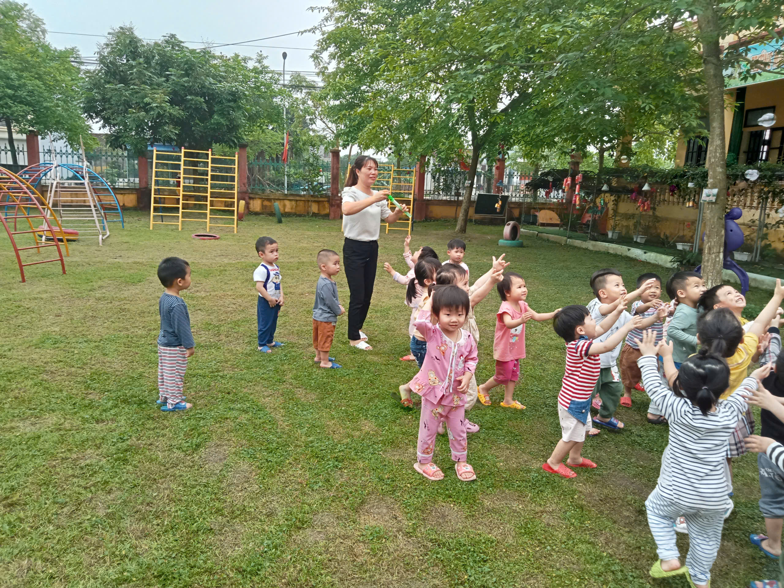 Hoạt động ngoài trời lớp 2 tuổi A trường mầm non Nghĩa Châu