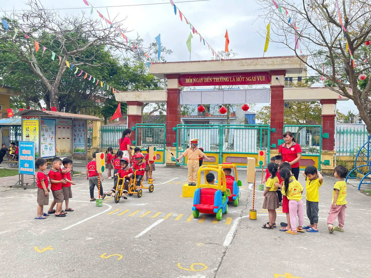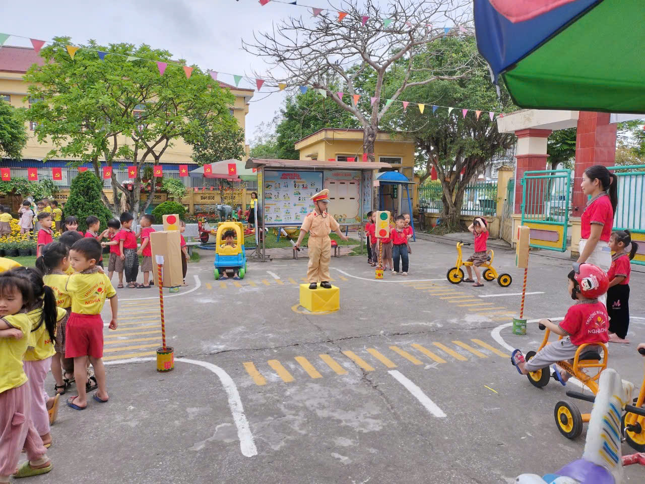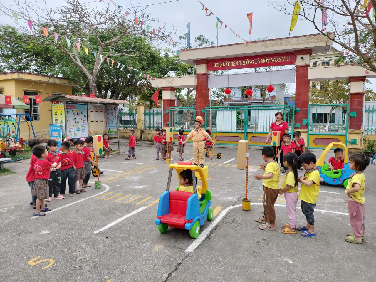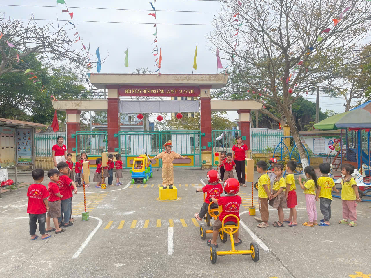 Trong thời gian qua, nhà trường đã tích cực lồng ghép nội dung giáo dục an toàn giao thông vào các hoạt động học và chơi của trẻ như: Nhận biết tín hiệu đèn giao thông, phân biệt các phương tiện giao thông, thực hành qua đường đúng nơi quy định, đội mũ bảo hiểm khi ngồi trên xe máy… Thông qua các hình thức sinh động như trò chơi, hoạt động trải nghiệm, đóng vai, trẻ được tiếp cận kiến thức một cách nhẹ nhàng nhưng hiệu quả.