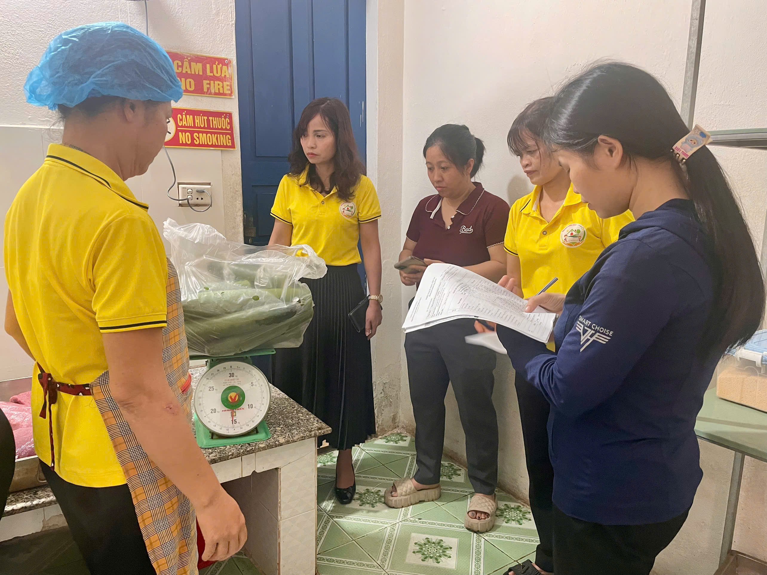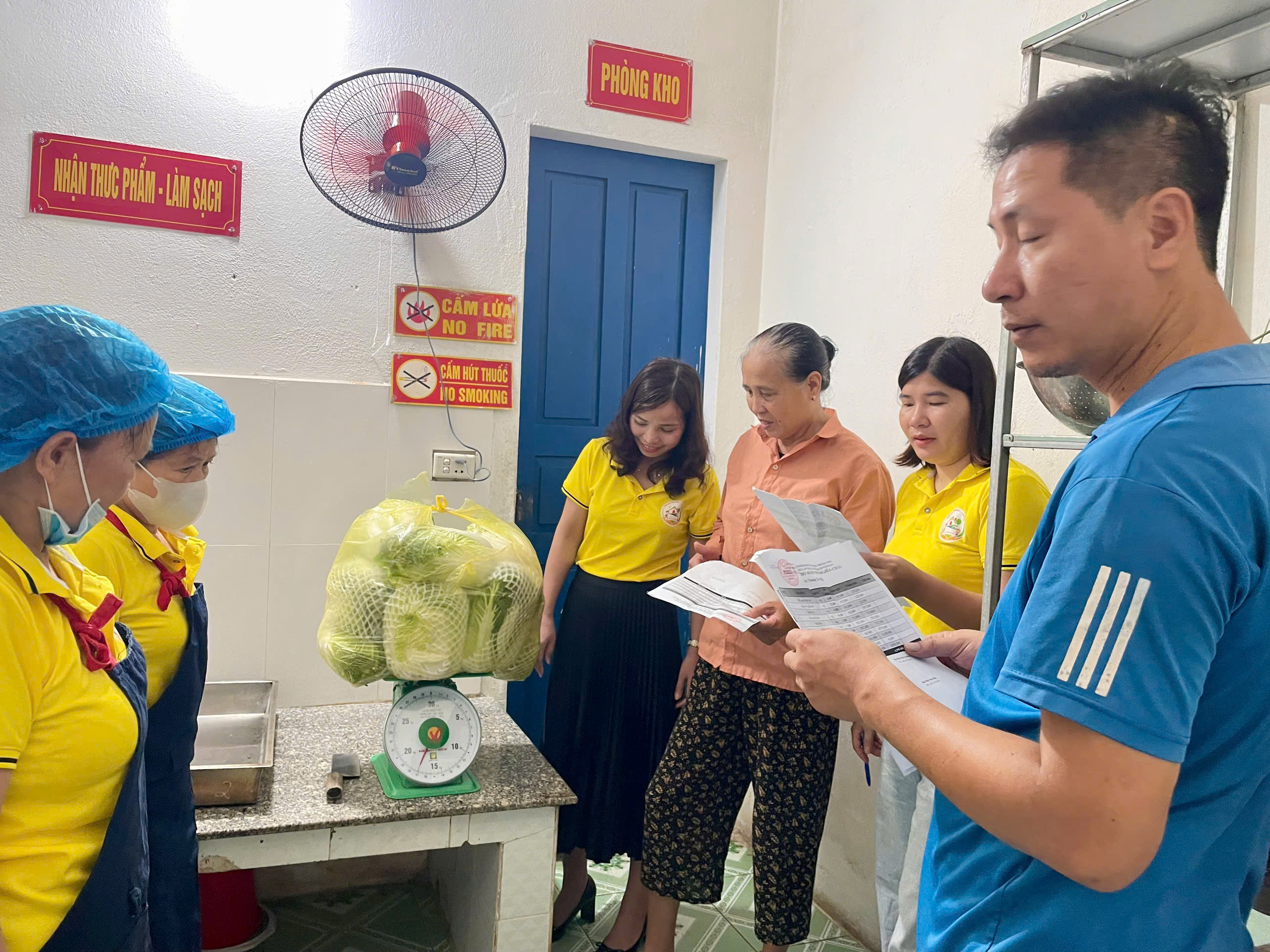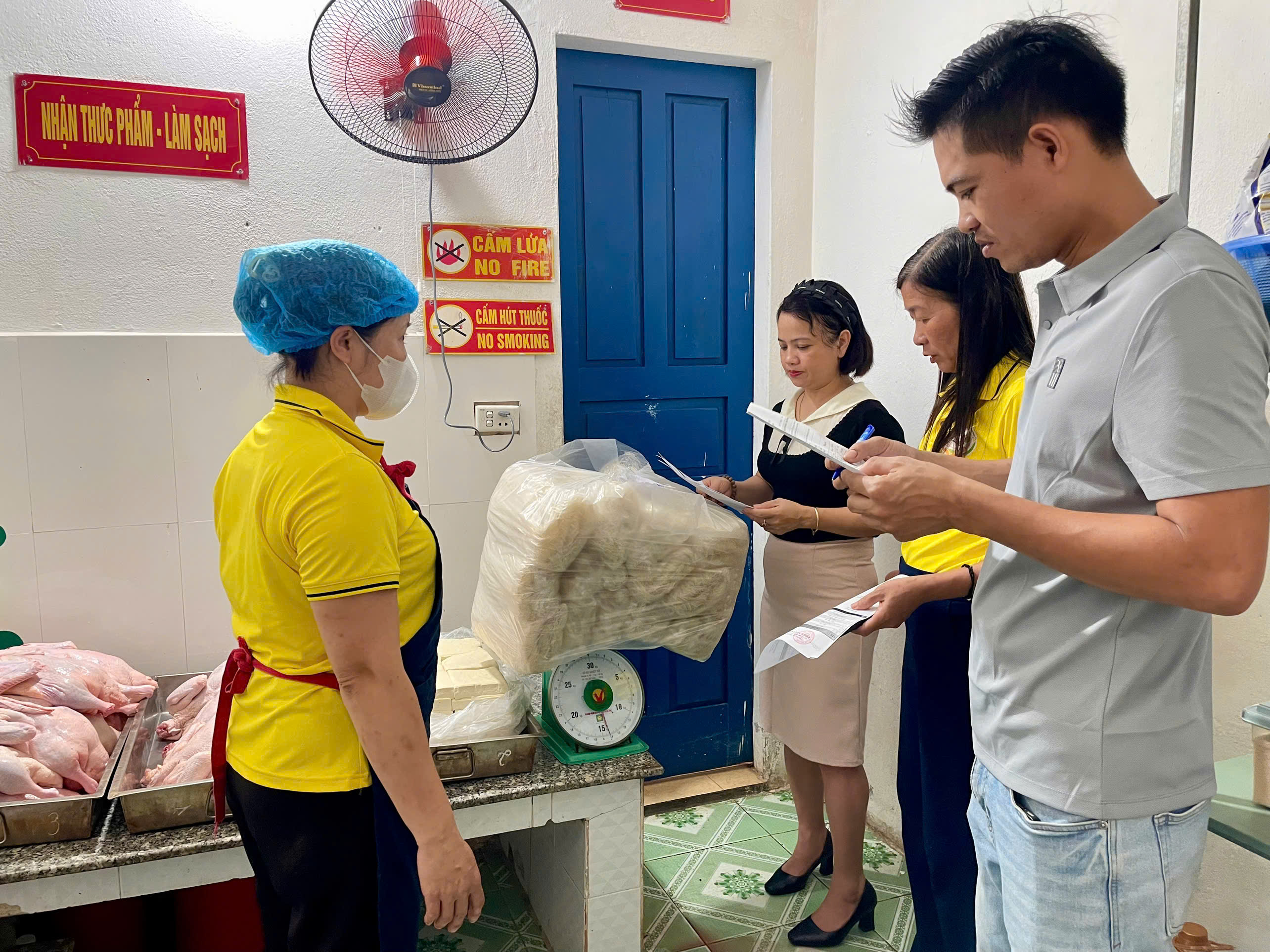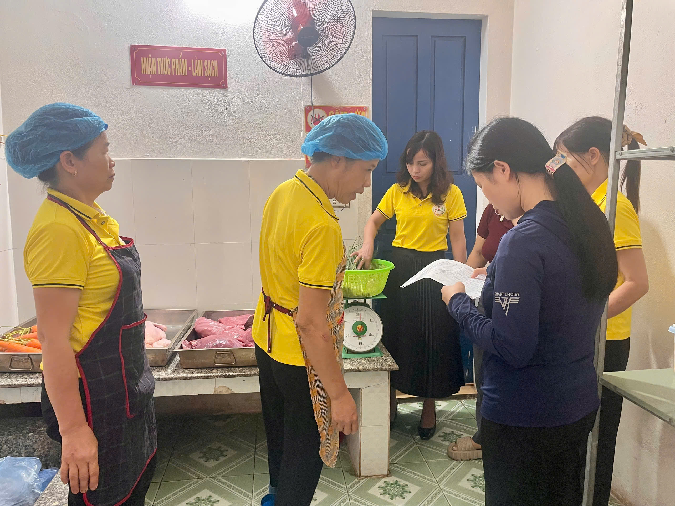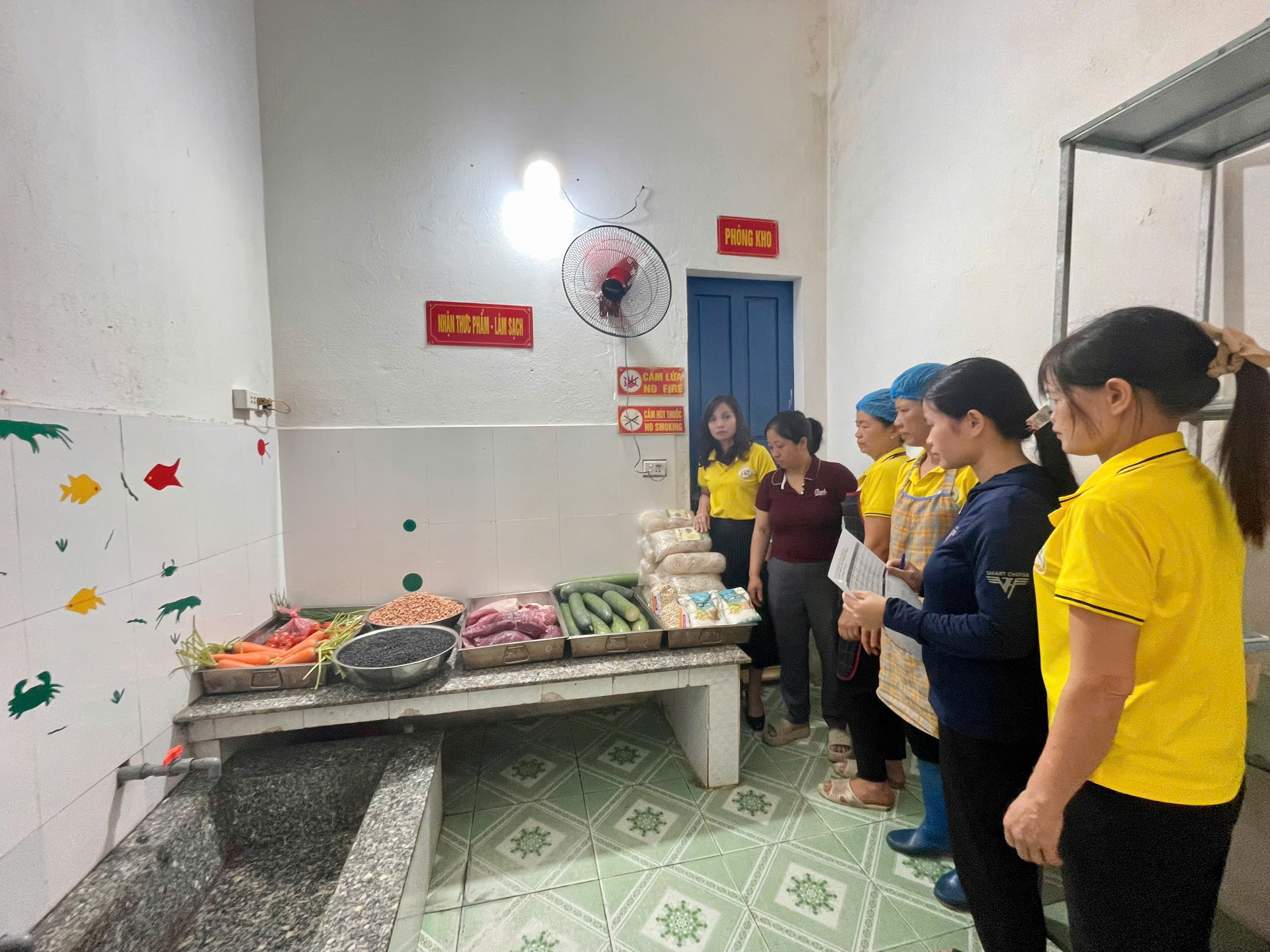 CÔNG TÁC PHỐI HỢP GIÁM SÁT KHÂU GIAO NHẬN THỰC PHẨM HÀNG NGÀY TẠI BẾP ĂN TRƯỜNG MẦM NON NGHĨA CHÂU XÃ NGHĨA HƯNG, TỈNH NINH BÌNH