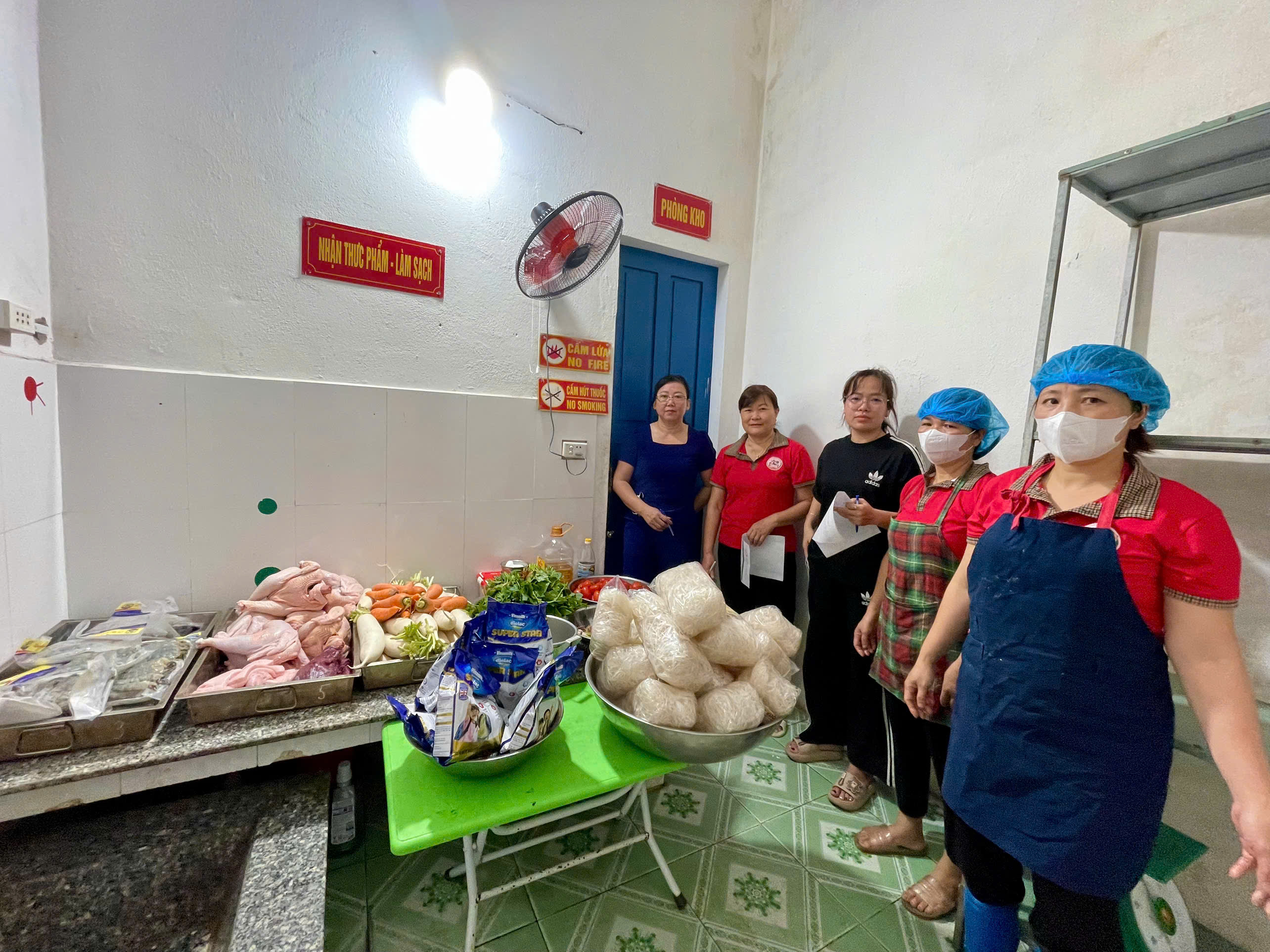 Tại bếp ăn Trường Mầm non Nghĩa Châu xã Nghĩa Hưng tỉnh Ninh Bình