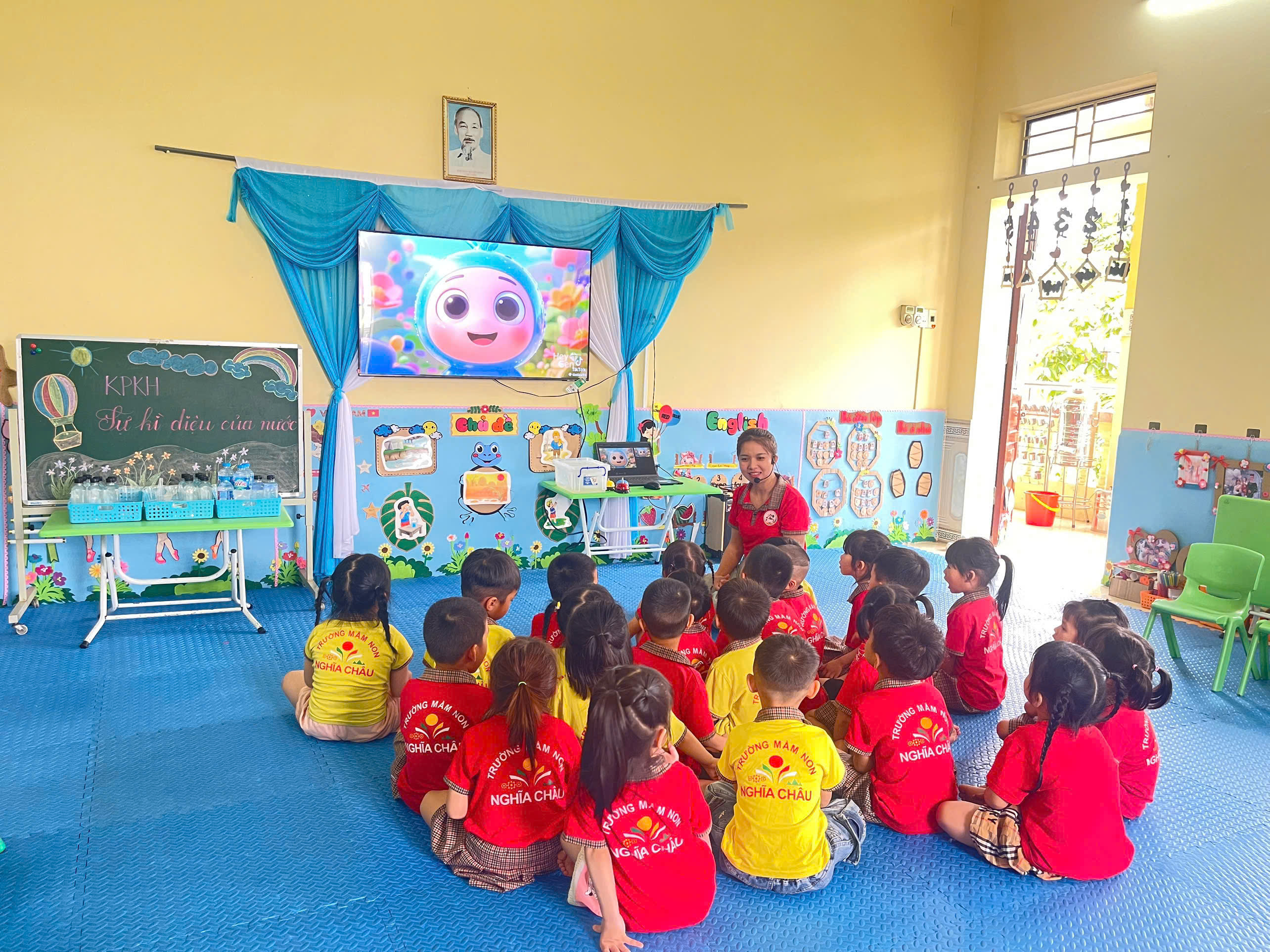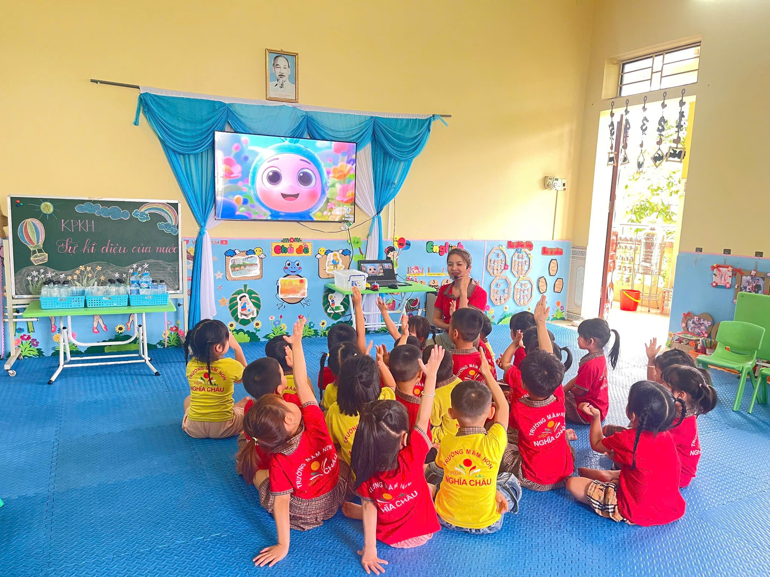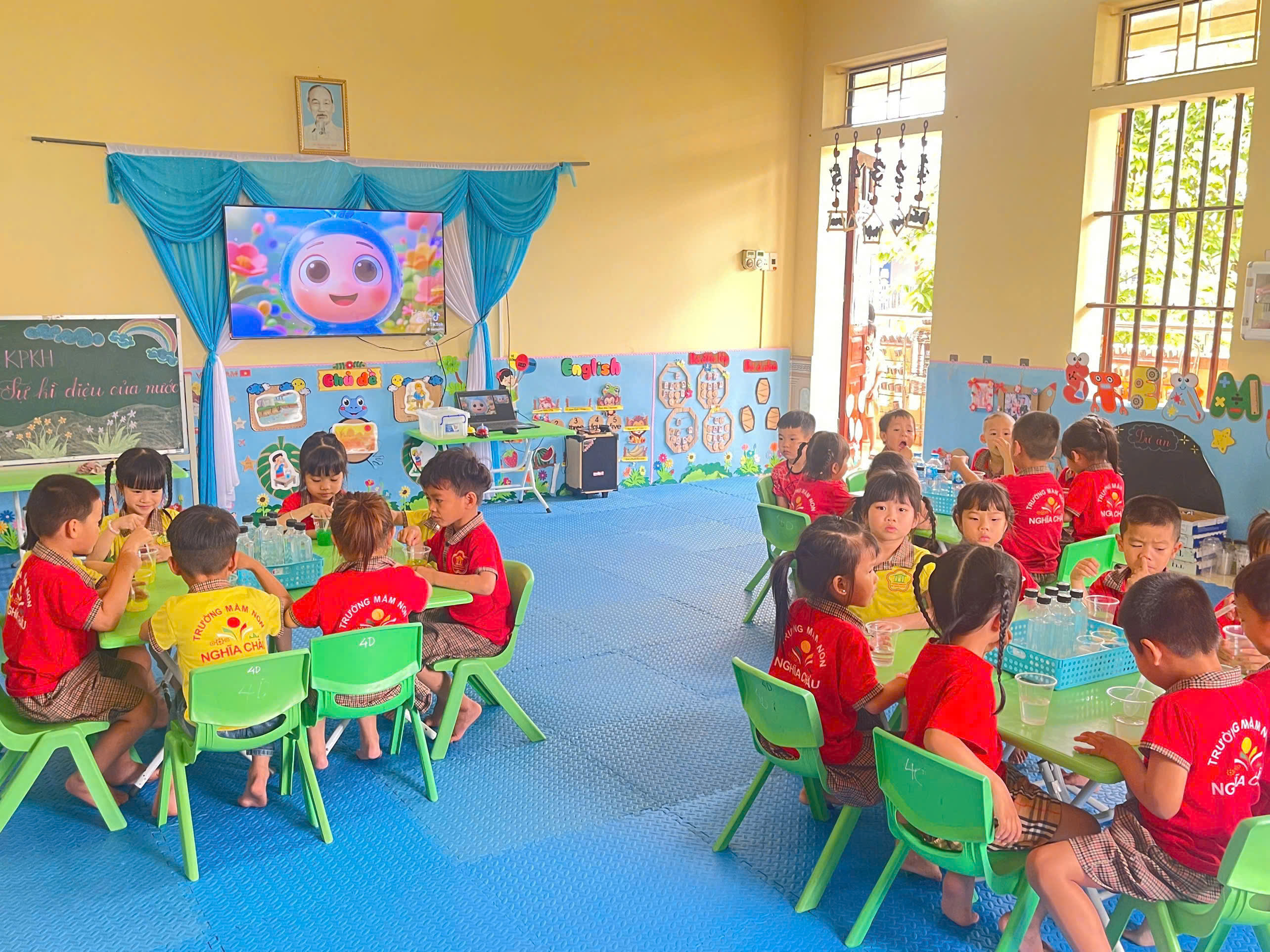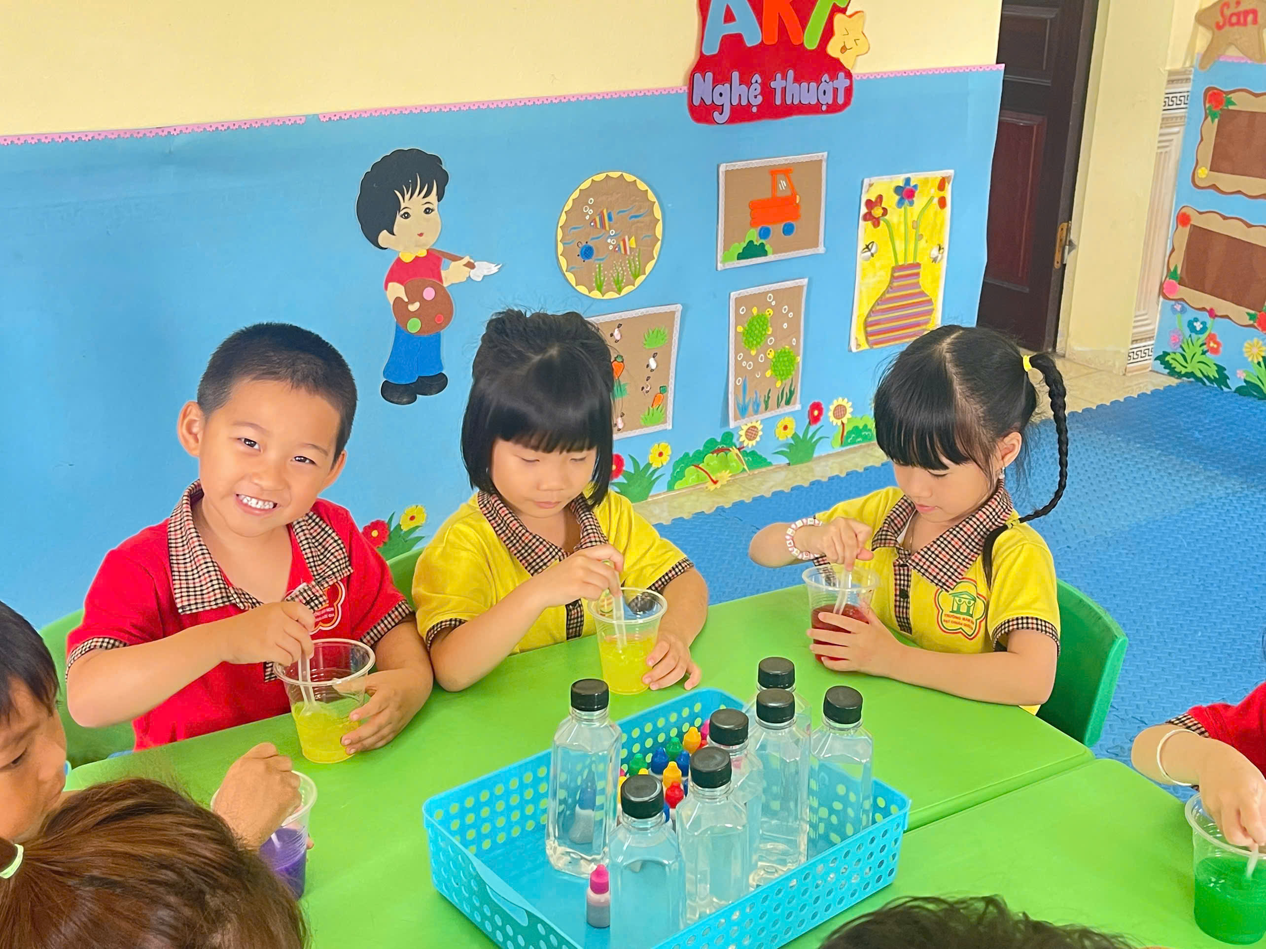 Không chỉ dừng lại ở việc quan sát, trẻ còn được tham gia các trò chơi nhỏ như: “Nước đổi màu”… Qua đó, trẻ bước đầu hình thành kỹ năng dự đoán, quan sát và rút ra kết luận đơn giản. Những câu hỏi ngây thơ, những ánh mắt tò mò của các bé đã làm cho giờ học trở nên sôi nổi và đầy hứng khởi.