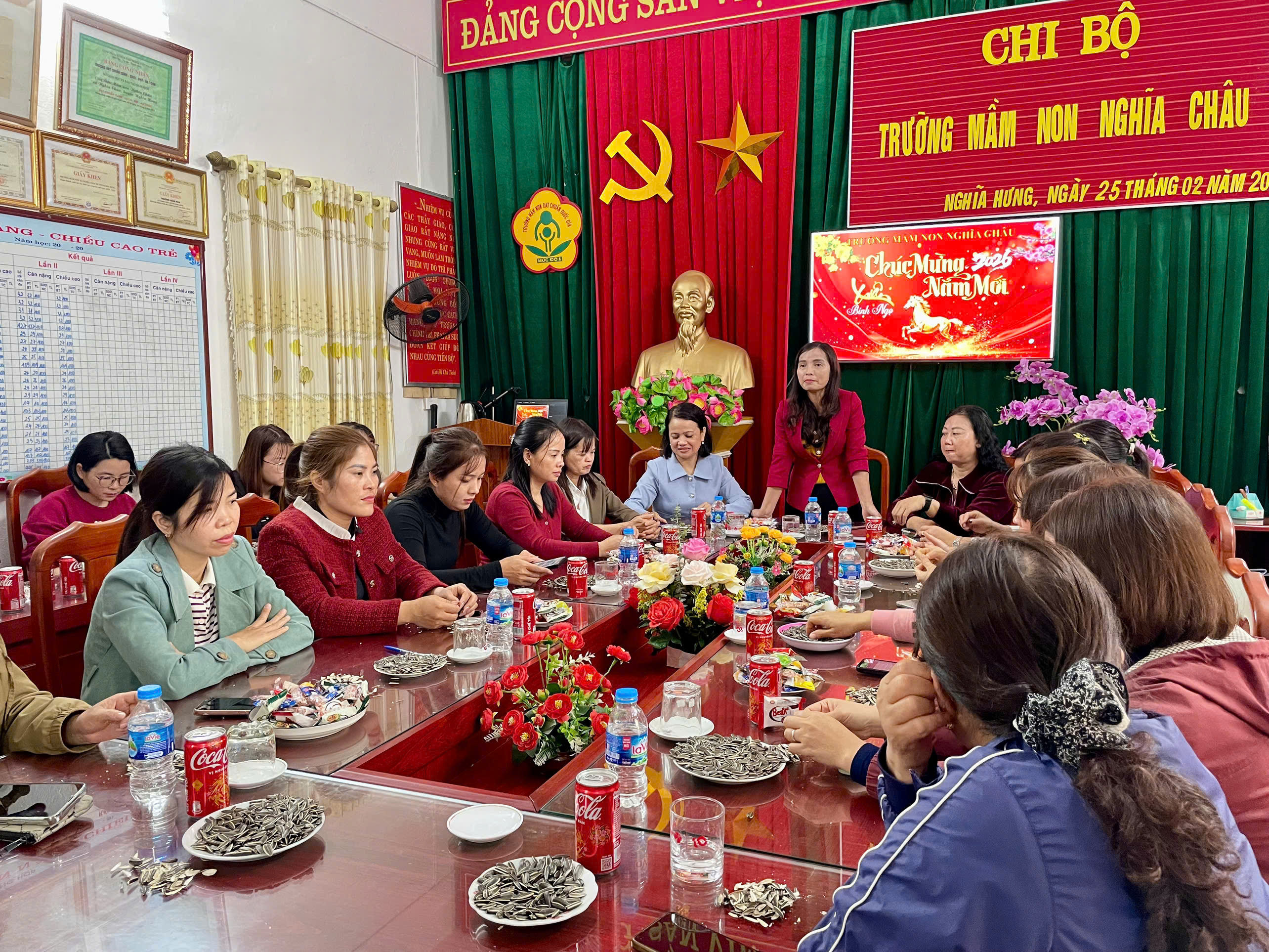 Trong không khí vui tươi, ấm áp của những ngày đầu năm mới, Trường Mầm non Nghĩa Châu long trọng tổ chức Hội nghị gặp mặt đầu xuân năm 2026 với sự tham gia đầy đủ của Ban giám hiệu cùng toàn thể cán bộ, giáo viên, nhân viên nhà trường.