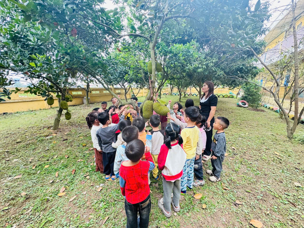 Trải nghiệm thú vị – Lớp 4 tuổi C thăm vườn cây ăn quả của trường